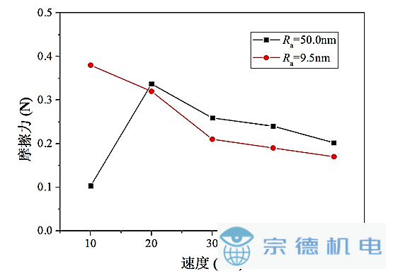 图5 摩擦系数随速度的变化(加载力1.4N)